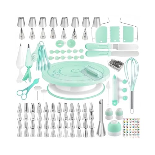 BGHYJKOL Poche A Douille Patisserie Ensemble de décoration gâteaux 137 pièces - Plateau tournant antidérapant avec Douilles, racloirs et Outils for pâtisserie Professionnelles(137 pcs Green)