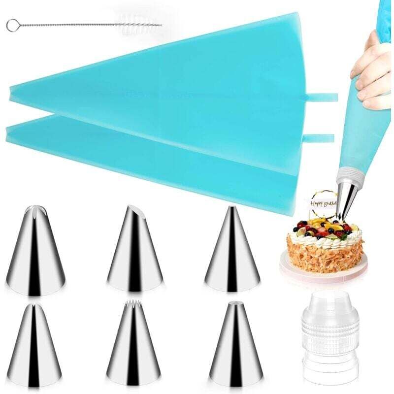 Lot de Décoration de Gateau 10 Pièces, 6 Douilles de Poches, 2 Poches Patissière en SiliCône, Outils Ustensiles de Patisserie-Fei Yu
