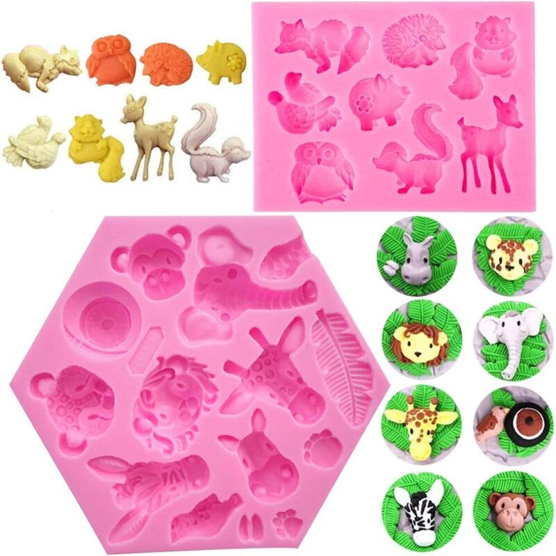 Moules en Silicone 3D Animaux Fondant Mould pour Décorer des Gateaux Outils de Patisserie DIY Bonbons Muffin Gelée Chocolat Moules 2 pièces