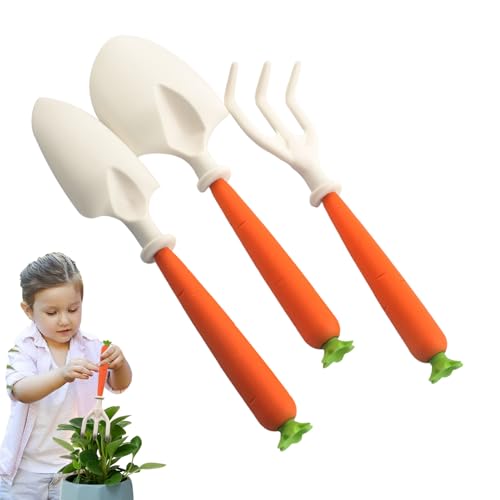 Kit d'outils de jardin pour – Pelle et râteau avec poignée en forme de carotte, ensemble d'outils de jardin – Avec truelle pour planter la terre, les , creuser dans le parterre