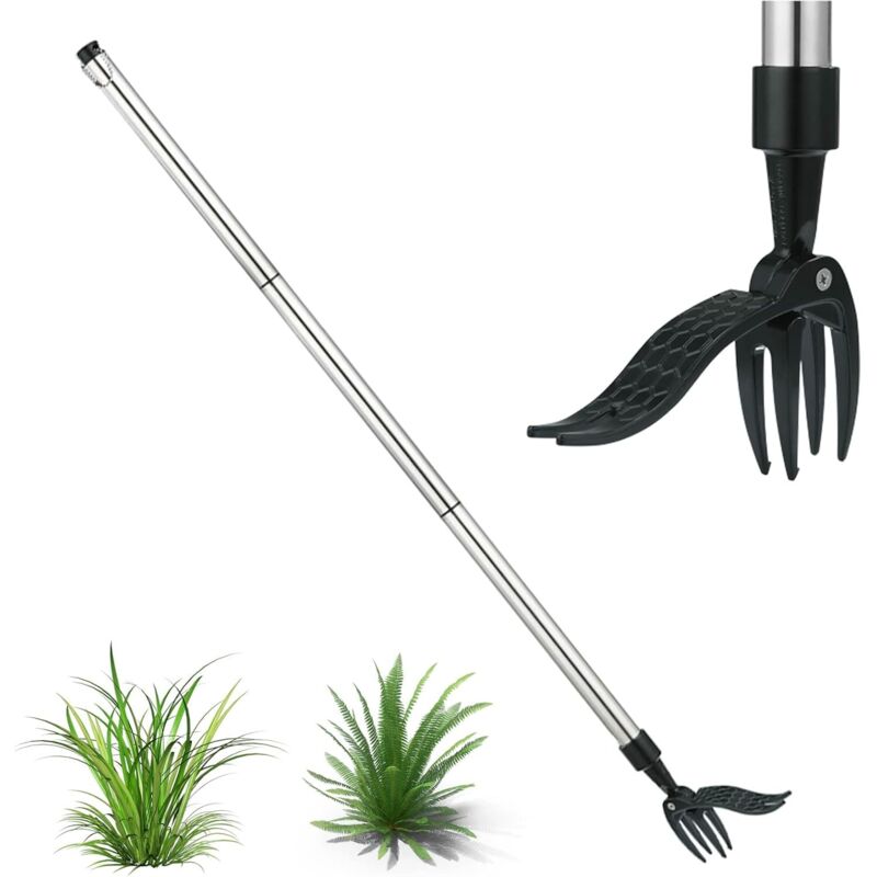 Tuoservo Extracteur de mauvaises herbes manuel avec poignée en acier et 3 griffes, outil de ramassage facile pour enlever les racines du jardin