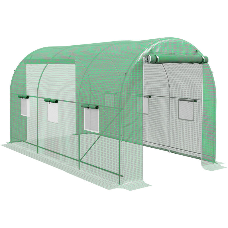 Outsunny - Serre tunnel de jardin 3,5 x 3 x 2 m grande taille 6 fenêtres vert