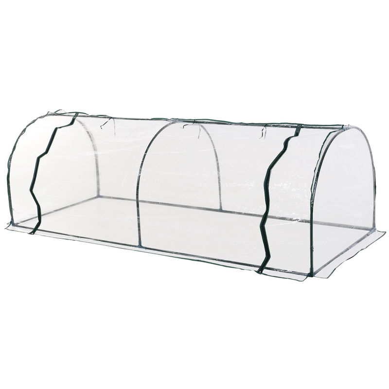 Outsunny Serre de Jardin Tunnel Mini Serre Tunnel Serre à tomates 2L x 1l x 0,8H m Grande Porte zippée bâche Plastique Transparent métal époxy Vert