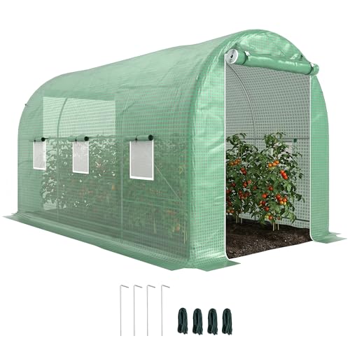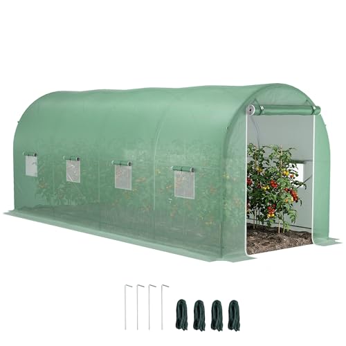 Outsunny Serre de Jardin Tunnel Surface Sol 10 m² 5L x 2l x 2,05H m châssis Tubulaire renforcé Porte zippée 8 fenêtres enroulables Vert