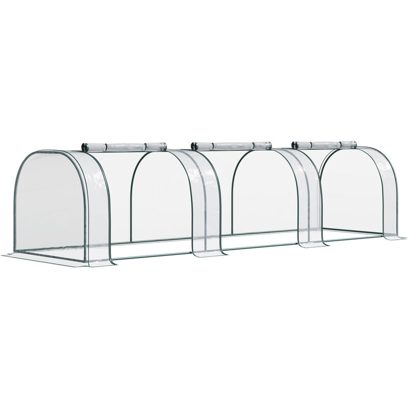 Outsunny Mini Serre de Jardin Mini Serre Tunnel Serre à tomates 3L x 1l x 0,8H m Acier PVC Haute densité Anti-UV 3 fenêtres avec Zip enroulables Vert et Transparent