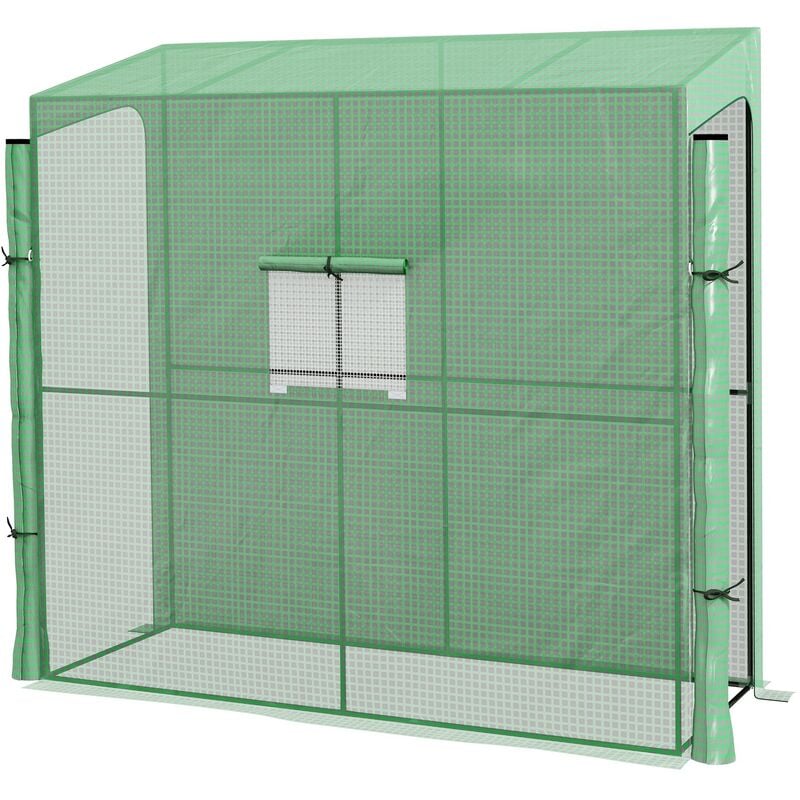 Outsunny - Serre de jardin adossée serre adossée dim. 2L x 0,8l x 2H m 2 portes zippées fenêtre acier pe haute densité vert