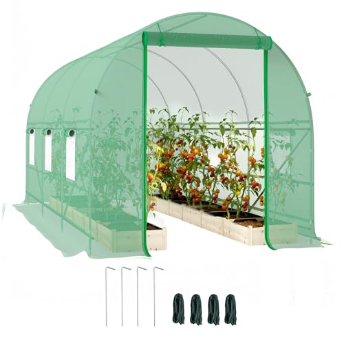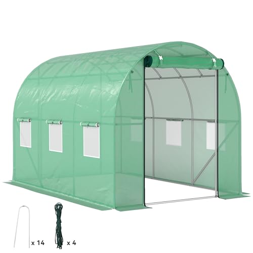 Outsunny Serre de Jardin Tunnel, Serre Tunnel 6 m² avec 6 fenêtres et 1 Porte Enroulable, Toile PE Structure en Acier galvanisé, Vert