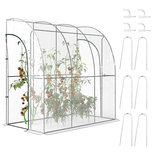 Outsunny Serre de Jardin adossée, Serre de Balcon, bâche renforcée PVC, châssis en Acier, 2 Portes zippées enroulables, pour légumes Plantes Fleurs, intérieur et extérieur, 214x118x212cm, Transparent
