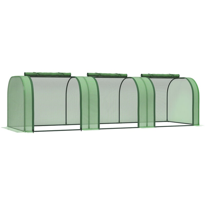 Outsunny Mini Serre de Jardin Mini Serre Tunnel à tomates 300 x 80 x 45 cm Acier PE Haute densité 140 g/m² Anti-UV 5 Portes en Filet enroulables Vert