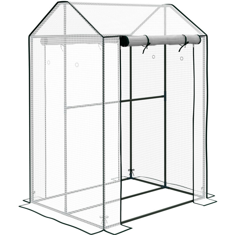 Outsunny Serre de Jardin PE, Serre de Balcon, bâche renforcée 135 g/m², châssis en Acier, 2 Portes zippées enroulables, pour légumes Plantes Fleurs, intérieur et extérieur, 100 x 80 x 150 cm Blanc