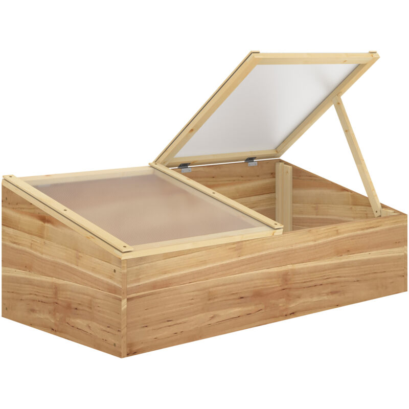 Outsunny Mini Serre de Jardin Serre pour semis dim. 100L x 50l x 36H cm Toit 2 pans ouvrables séparemment Panneaux de Polycarbonate Bois Sapin