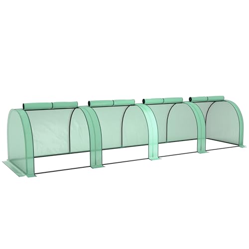 Outsunny Mini Serre de Jardin Mini Serre Tunnel Serre à tomates 3,95L x 1l x 0,8H m Acier PVC Haute densité Anti-UV 4 fenêtres avec Zip enroulables Vert et Transparent