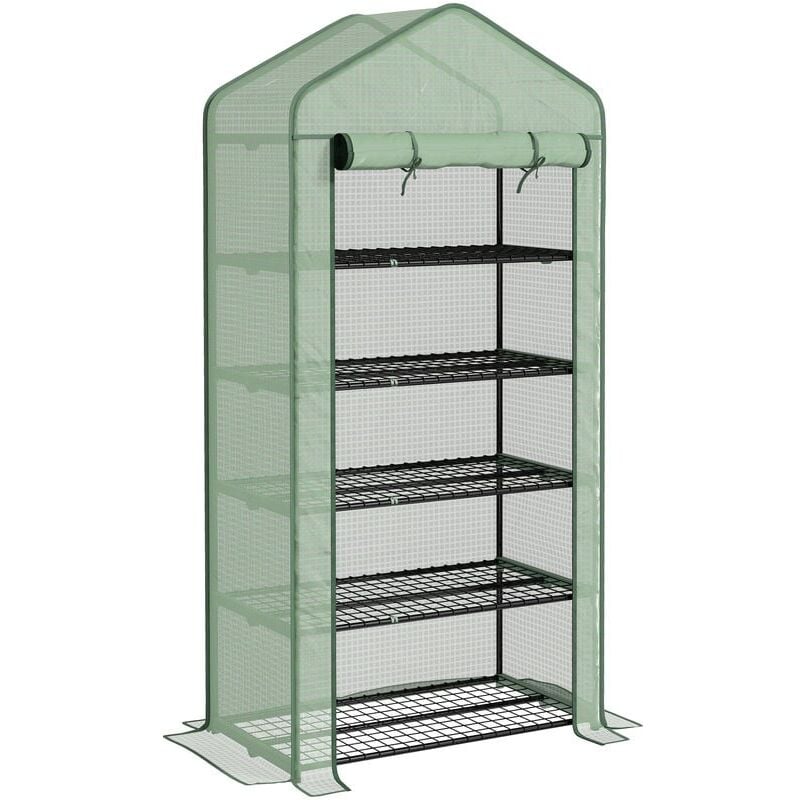 Outsunny - Serre de jardin balcon étagère serre 5 niveaux 0,69L x 0,49l x 1,93H m acier galvanisé bâche amovible pvc vert
