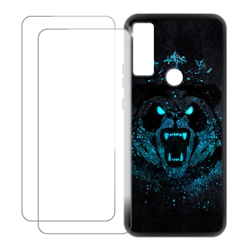 UOGNADGD Compatible avec Cricket Ovation U705AA U705AC Coque Personnalisée Colorée avec 2 Protections Écran en Verre Trempé – Antichoc et Anti-Rayures (Loup 3)
