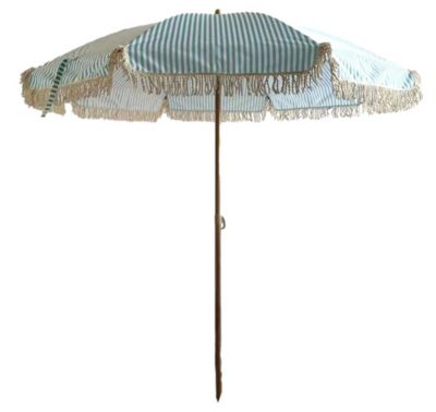 Parasol centré droit rond ouverture manuelle toile rayée bleu et blanc Oviala Gaya