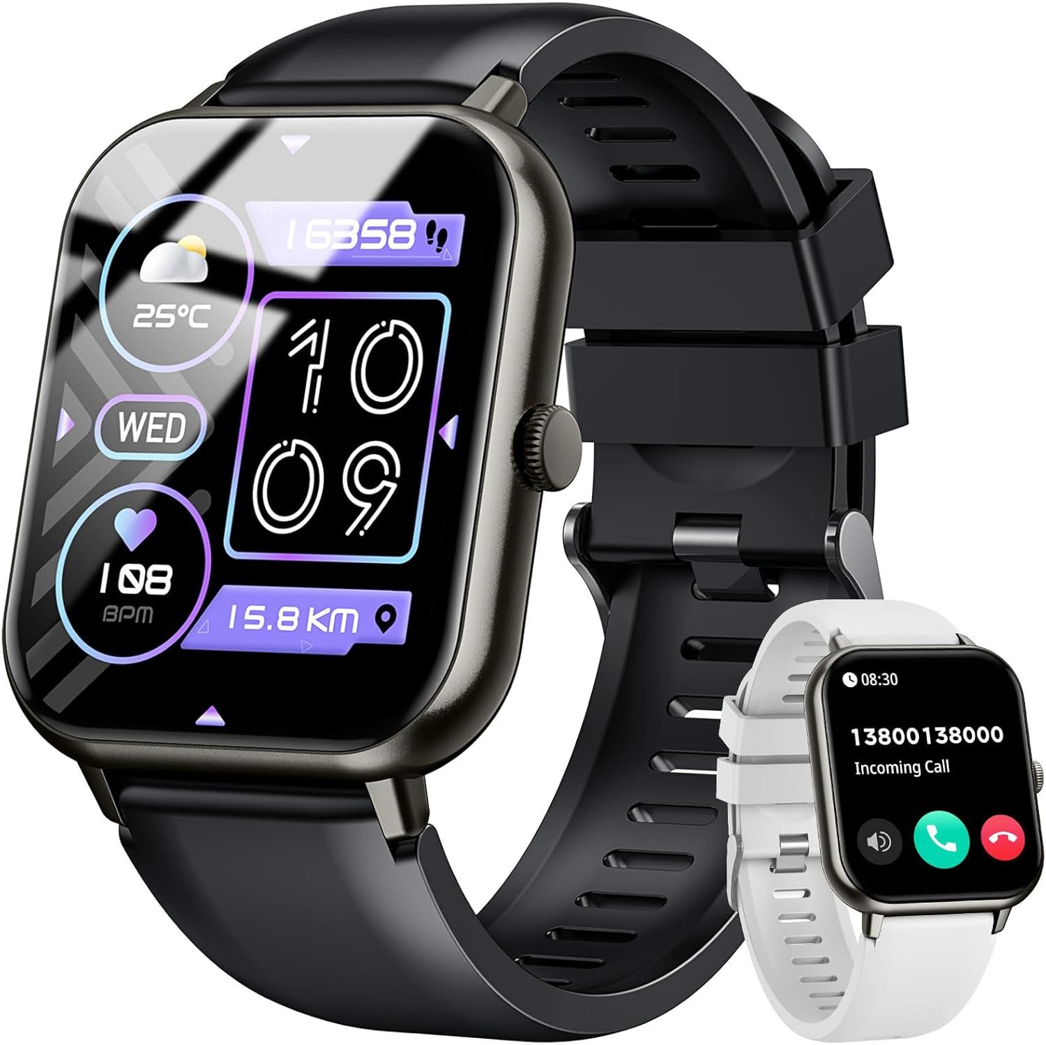 Women's Men's Smart Watch With Bluetooth Call, Social Media Notifications, Sleep Analysis, Heart Rate Monitor, Oximeter, Pedometer, 100 Sports Modes, For Android And Ios (Black)