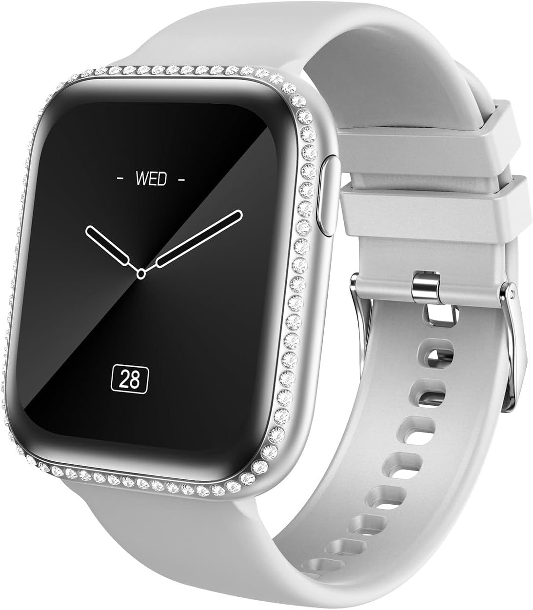 Women's Smartwatch 1.75 Inch Amoled Waterproof Ip68 Smartwatch For Android Ios With 130+ Sport Pedometer Heart Rate Monitor Oximeter Sms Notification/Call (Grey Strap)