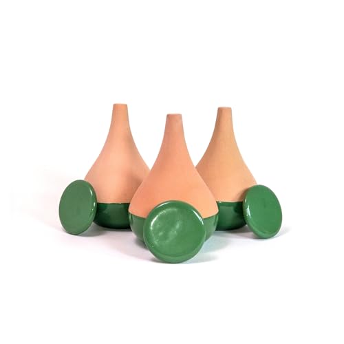 3 Oyas a Planter en Terre Cuite de 300 ML en Couleur - avec Couvercle- Goutte a Goutte pour Plante d'interieur - ollas (Vert)