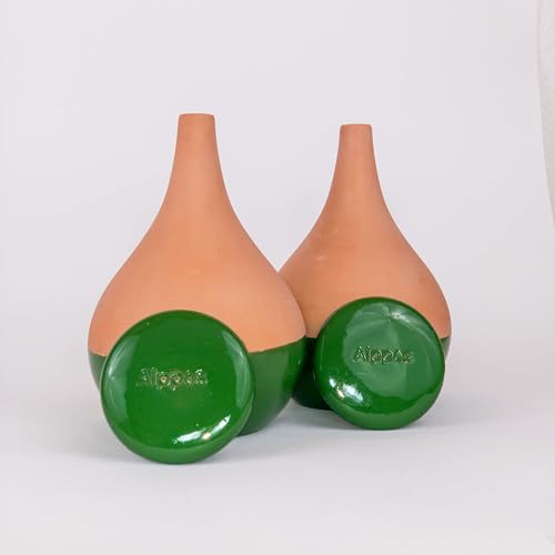 Alppos 2 Oyas à Planter 0,8 Litre Vert en Terre Cuite avec Couvercle - ollas pour Plante intérieure et extérieure - Goutte à Goutte par capilarité
