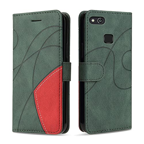 KKEIKO Coque pour Huawei P10 Lite/Nova Lite, Antichoc Étui à Rabat avec Porte Cartes, Magnetique Portefeuille Coque en PU Cuir pour Huawei P10 Lite/Nova Lite, Vert