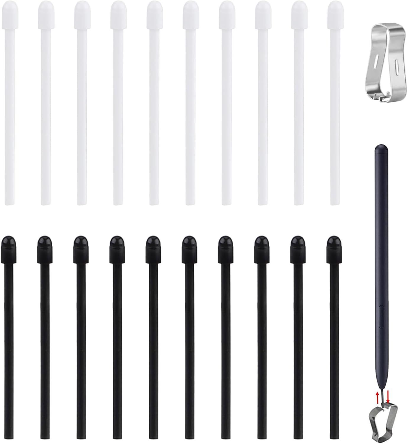 XINSUO® Pointe de Stylet,Pointes de Marqueur pour Remarkable 2,Plume de Remplacement pour Ecran Tactile,Compatible Samsung N3/N4/N5/P580/P600,avec Pincette (Noir + Blanc
