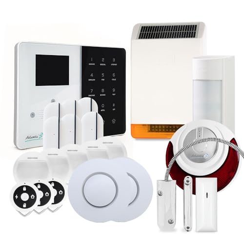 Atlantic's - Alarme Maison sans Fil IP IPEOS KIT 13 MD-334R - Pack Alarme WiFi - Paramétrage à Distance Blanc/Noir