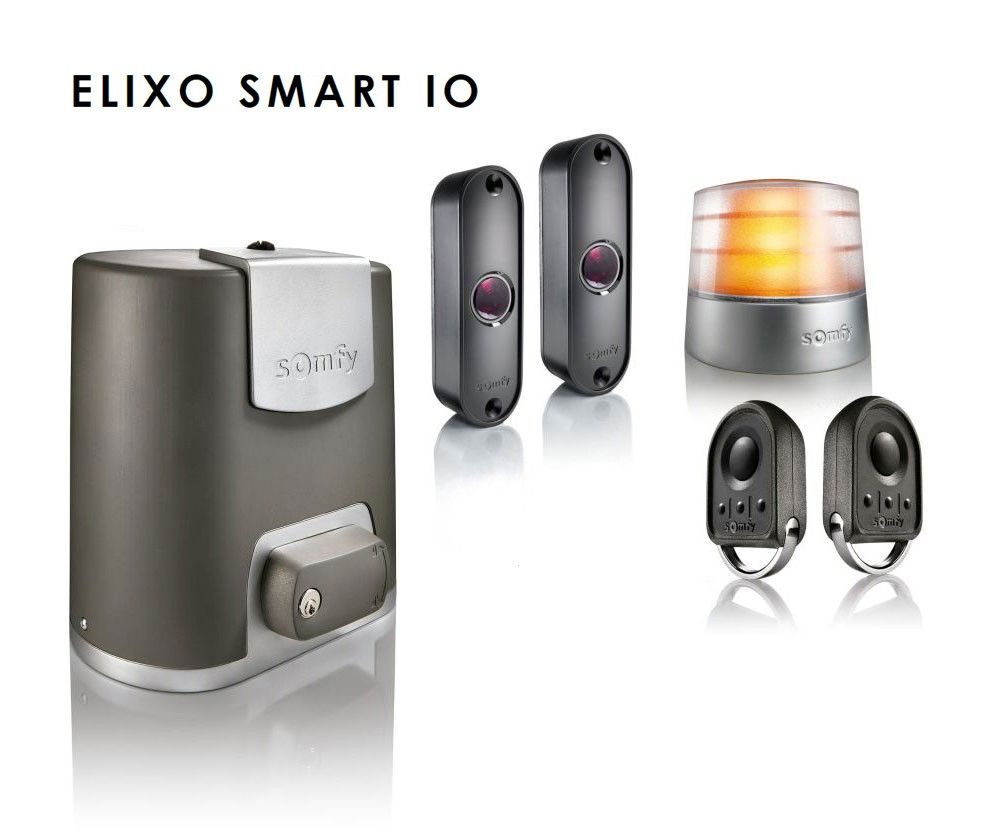 Somfy 1241520 - Motorisation professionnelle Elixo 3S M io - Pack confort pour portail coulissant - Livrée avec 2 télécommandes, feu orange, photocellules et batterie de secours