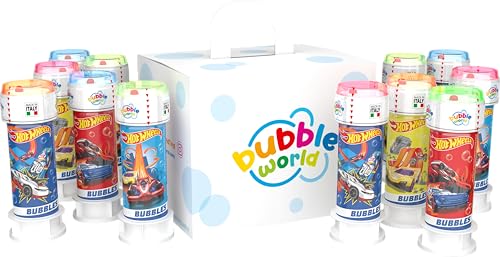 Bubble World - Bulles de Savon Hot Wheels pour Enfants - Pack de 12 pièces de 60 ML - Gadgets d'anniversaire sur Le thème Auto Corsa - Fabriqué en Italie