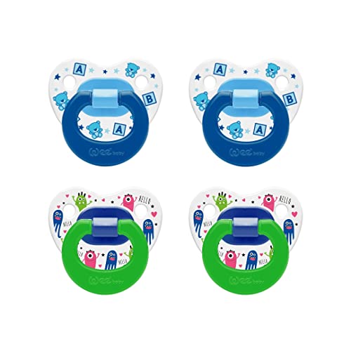 Wee Baby (Pack de 4) Tétine pour bébé | Tétine de dentition durable et attrayante avec tétine orthodontique en silicone pour des dents saines | Tétine pour nouveau-né avec trous d’aération