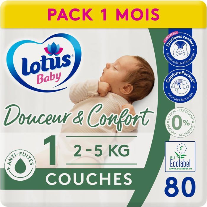 Couches taille 1 nouveau-né douceur naturelle 80 couches pack 1 mois 2-5 kg protection douce pour la peau.