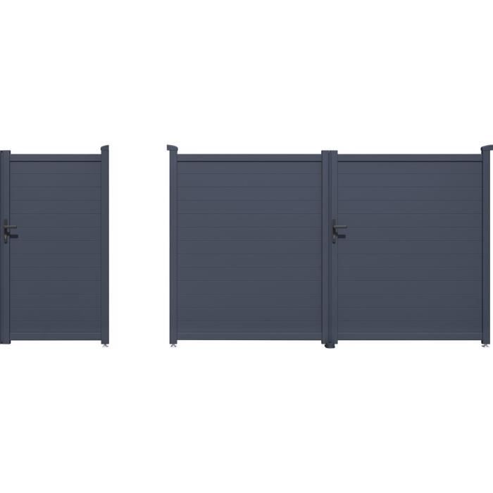 Pack Portail et Portillon Aluminium - Habitat et Jardin - Marc - Gris - Résistant aux Intempéries