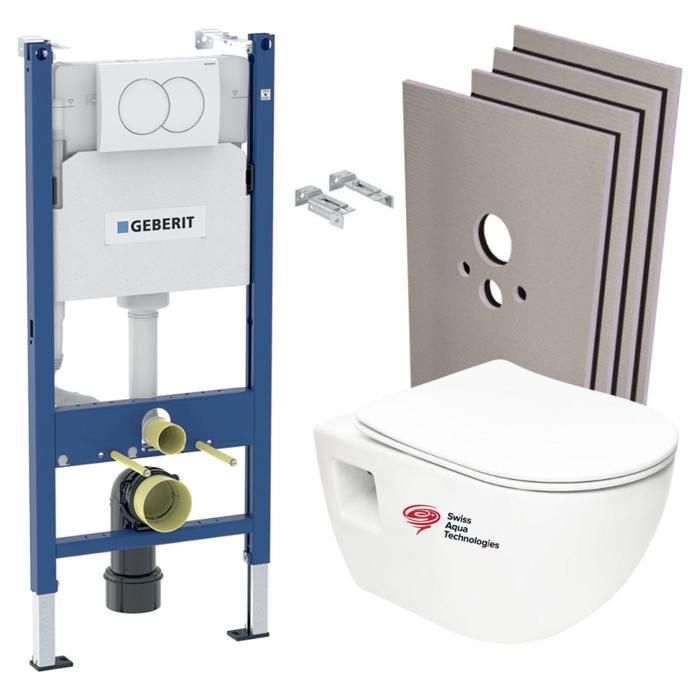 Geberit - Pack WC Bati Geberit + WC sans bride Swiss Aqua Technologies + Abattant SoftClose + Plaque + habillage (ProjectGeb3-sabo