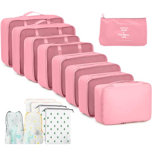 10 Pièces Organisateur Valise Rangement Valise Packing Cubes pour Voyages Randonnée Camping Rangement à Domicile Champagne Rose