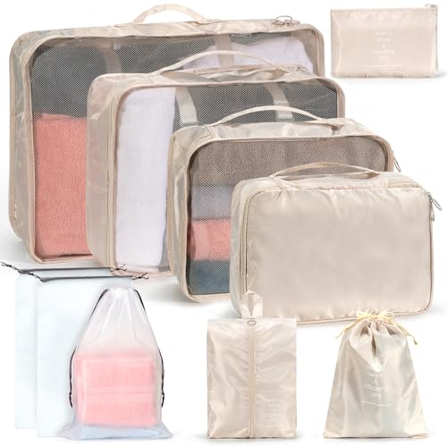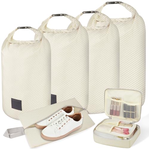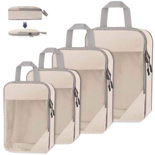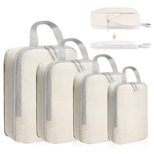 Bagage Sac Compression,Packing Cubes Compression Organisateur de Voyage Ultraléger,Rangement Valise peut Répondre Tous Vos Besoins de Voyage(Beige,4 pièces)