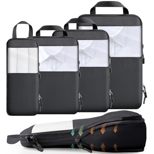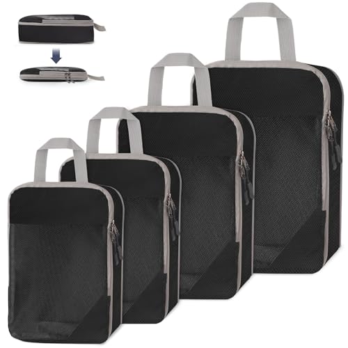 Bagage Sac Compression,Packing Cubes Compression Organisateur de Voyage Ultraléger,Rangement Valise peut Répondre Tous Vos Besoins de Voyage(Noir,4 pièces)