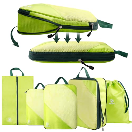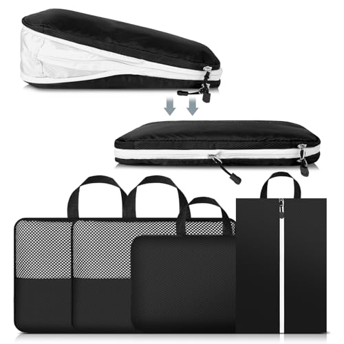 AiQInu Rangement Valise Lot de 5,Packing Cubes Compression Organisateur de Voyage Ultraléger, Extensible, Sac Compression à Chaussures, Bagage