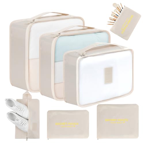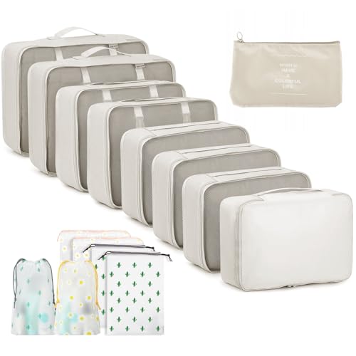 Rojeam 8 Pièces Organiseurs de Bagage Organisateur de Voyage Packing Cubes Sacs à Vêtements Rangement Valise Bagage Sac (Blanc crémeux)
