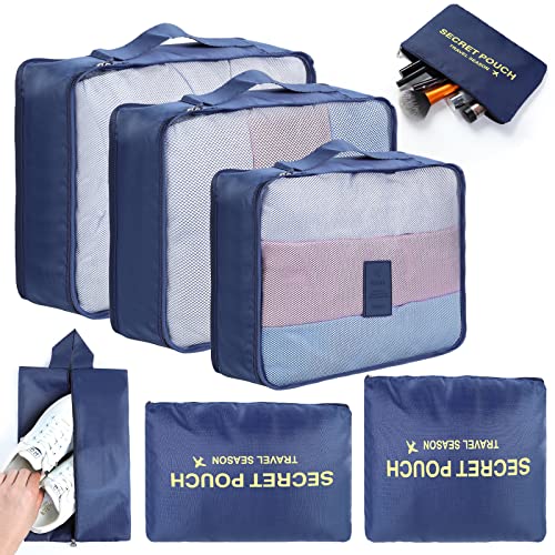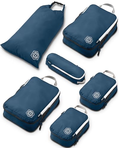 Compression Packing Cubes 6 Piece Set for Travel - Lightweight, Durable Clothes Organizer for Carry-On Luggage and Backpacks by TRIPPED Travel Gear (Navy Blue)