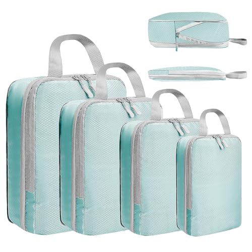 Bagage Sac Compression,Packing Cubes Compression Organisateur de Voyage Ultraléger,Rangement Valise peut Répondre Tous Vos Besoins de Voyage(Bleu,4 pièces)