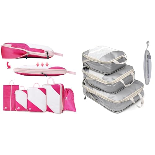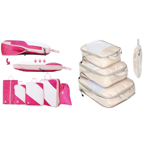 BAGSMART 6 Pièces Organisateur Valise,Sac Compression Voyage,Packing Cubes Réutilisable, Rangement Valise Accessoire,avec Sac à Linge Pratique pour Sac à Dos,Valise,Organiseur,Rose
