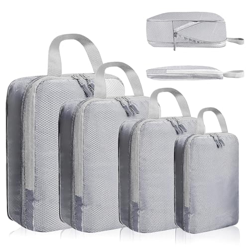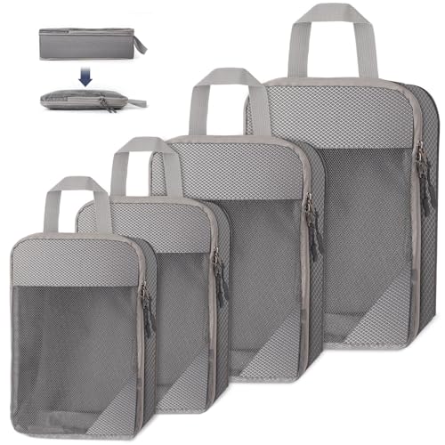 Bagage Sac Compression,Packing Cubes Compression Organisateur de Voyage Ultraléger,Rangement Valise peut Répondre Tous Vos Besoins de Voyage(Gris,4 pièces)