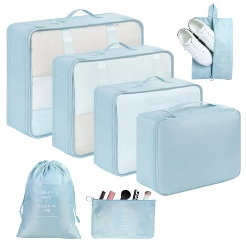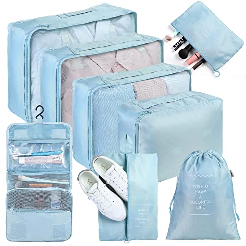 Meowoo Organisateur Valise Lot de 8 Rangement Valise, Packing Cubes Organisateurs de Voyage Pochette Rangement Valise, Sacs Rangement de Valise pour Les Vêtements,Chaussures et Cosmétiques(Bleu)