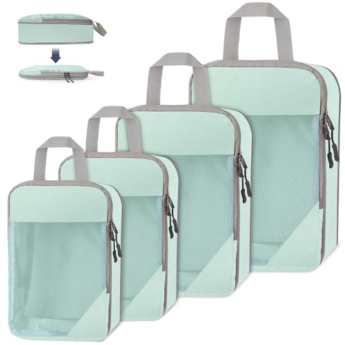 Gonex Rangement Valise Lot de 4 Packing Cubes Compression Organisateur de Voyage Organisateur Valise Sacs de Rangement avec Compression Pour Voyages ou Stockage à Domicile,Vert