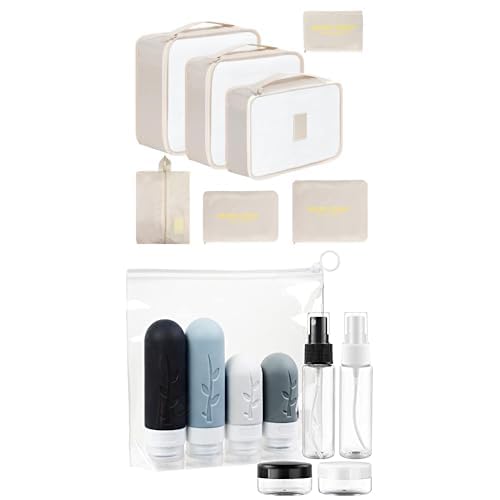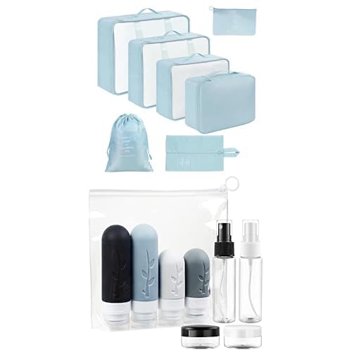 Romon Valise Lot de 7 ImperméAble Organisateur De Voyage Packing Cubes Organiseur+ Romon Flacons de Voyage, 8 Pièces Bouteille de Voyage Silicone