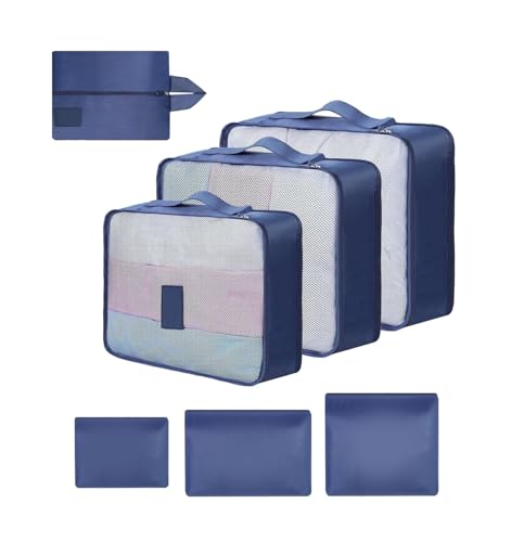 AiQInu Rangement Valise Lot de 5,Packing Cubes Compression Organisateur de Voyage Ultraléger, Extensible, Sac à Chaussures, Bagage Compression (Bleu foncé)