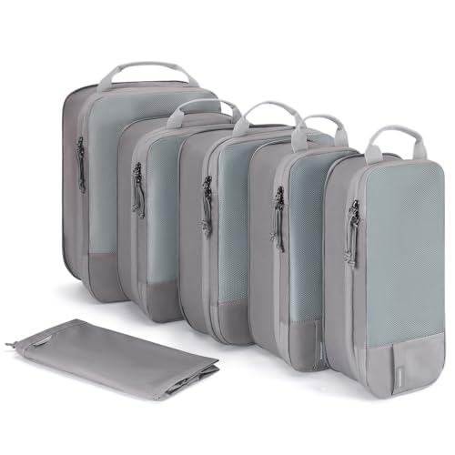 BAGSMART 6 Pièces Organisateur Valise,Sac Compression Voyage,Packing Cubes Réutilisable, Rangement Valise Accessoire,avec Sac à Linge Pratique pour Sac à Dos,Valise,Organiseur,Gris
