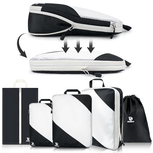 AiQInu Rangement Valise Lot de 5,Packing Cubes Compression Organisateur de Voyage & Organisateur Valise Rangement Valise Organisateur Sac de Compression Voyage Organisateur de Valise