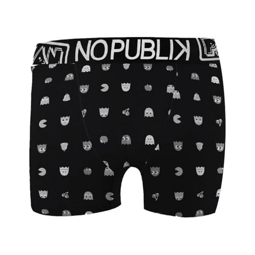 No Publik. - Boxer Featuring Pacman Homme Confort et Fantaisie en Coton -Assortiment modèles Photos Selon arrivages- Uni BW en Coton S