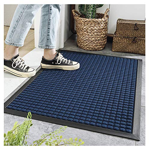 DEXI Paillasson Interieur Entree 50 x 80 cm, Tapis d'Entrée Antidérapant Lavable en Machine, Tapis de Sol avec Microfibres Douces Absorbantes pour Entrée, Couloir, Chien, Bleu-Noir