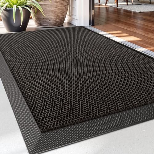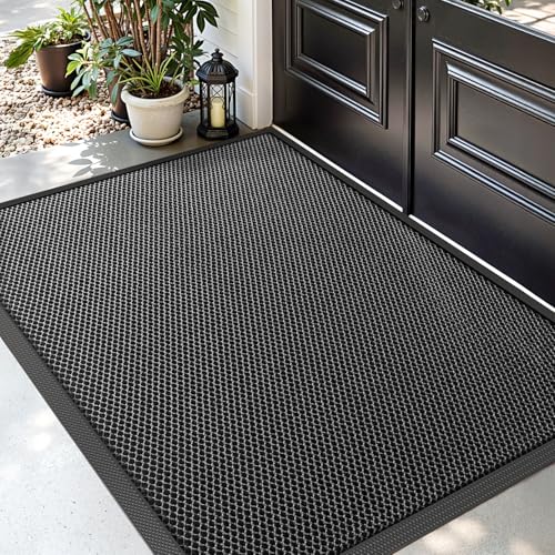DEXI Paillasson Exterieur Entree 60 x 90 cm, Tapis Entrée Interieur Antidérapant et Imperméable, Profil Bas, Lavable Paillassons pour Porte, Jardin, Cour, Noir